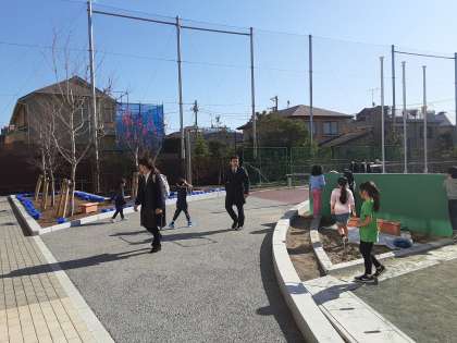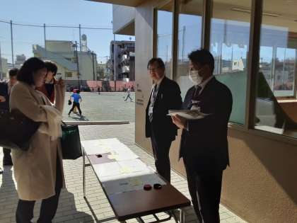 1年生の子がやってきた先生たちにきっちりとあいさつをしました。