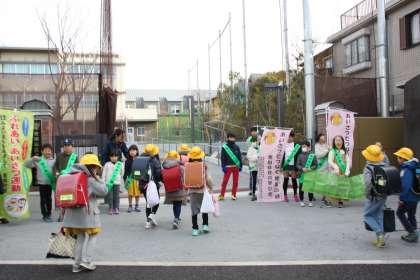 元気いっぱいの声で、あいさつを振りまく10班の子達。