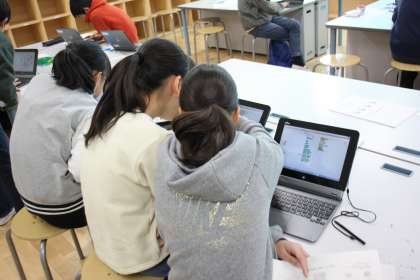 図形の法則性を、それぞれのブロックにまとめてブログラムを組みます。