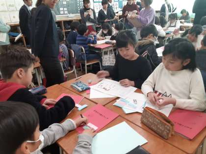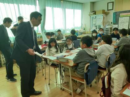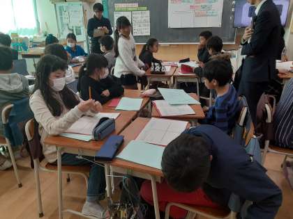 今日の6時間目に、4年2組で校内研究授業がありました。