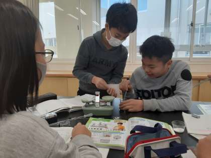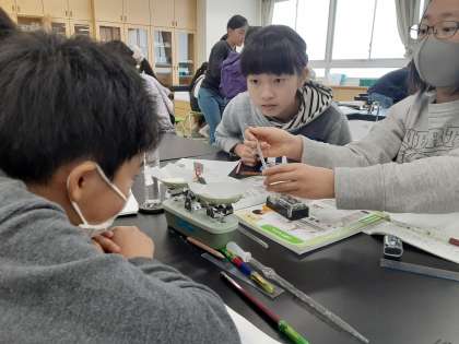 今日は50ミリリットルの水に、何グラムの食塩が溶けるかを実験しました。