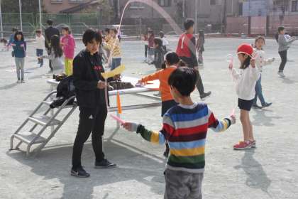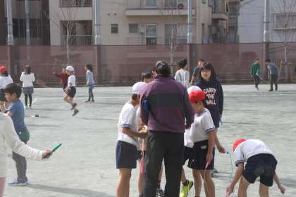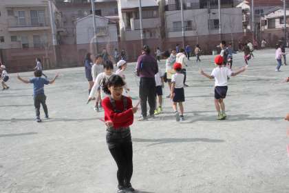 たくさんの子達が校庭にでて、短なわの技術を磨きます。