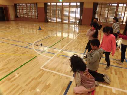 パラリンピックの種目でもある、ボッチャを活動しました。ボッチャは見ている側も楽しめるスポーツです。力加減に気を付けてボールを投げたり、周りでアドバイスを伝えたりして、楽しみました。
