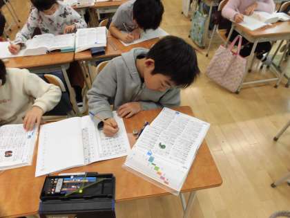 辞書を使い、言葉を調べました。調べて、意味を知る内に、新たな言葉を知る楽しさを味わうことができました。辞書も少しずつ引けるようになってきました。