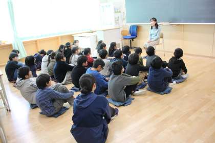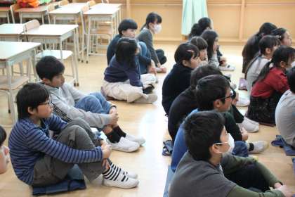 みんなで静かにお話を聴くのは当然ですが、姿勢も素晴らしい4年生たち。