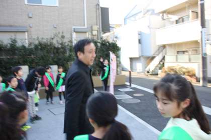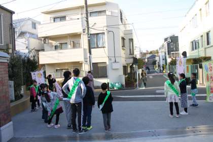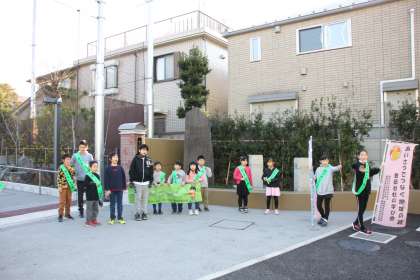 一週間にわたって続けられた12班による若小班あいさつ運動。
