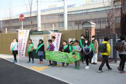 寒い朝になりましたが、みんなでしっかりとあいさつ!!