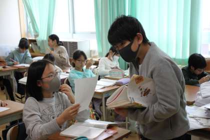 その後で、自分の考えを友達に披瀝し、交流をします。