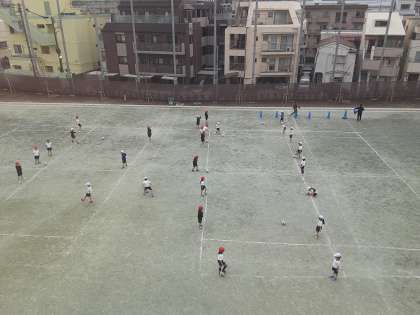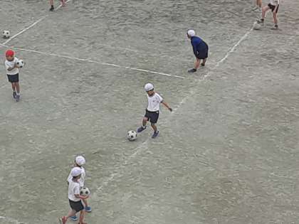 みんなで元気に走り回り、ボールを蹴ります。