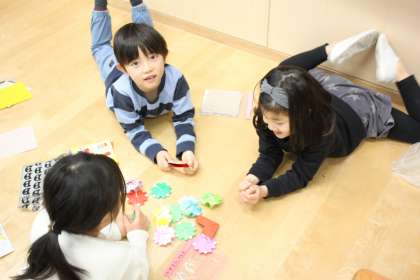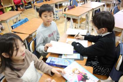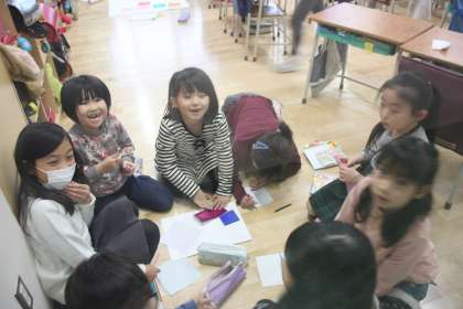 1年生がこの春に転校してしまう友達のために、お別れ会の準備をしています。