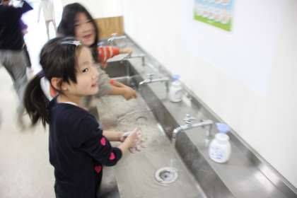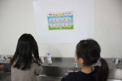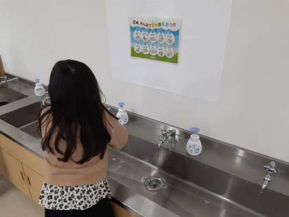 感染症に気をつけるべき時期ということで、子どもたちもじっくり手を洗っています。