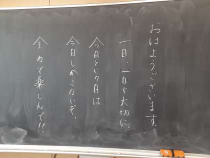 登校してきた6年生たちは、担任の先生からのメッセージに見入っていました。