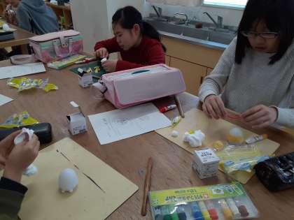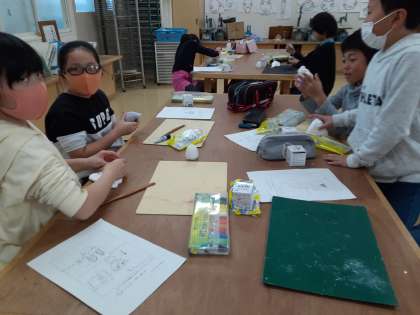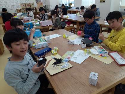 4年生が図工の時間に、LEDで光るたまごをつかって、工作をしました。