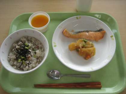 1炊飯器に酒・しょうゆ・塩を入れて炊く。