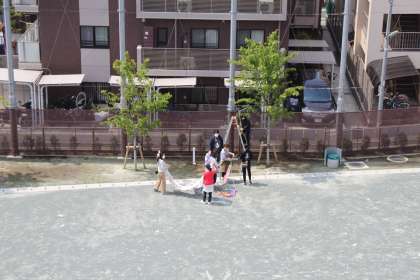 PTA役員の皆さんが来校し、若小名物のこいのぼりを掲揚してくださいました。