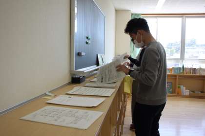 先週、今週と先生たちは分散して学校にやってきて、来週に迫った課題配布の準備をしています。