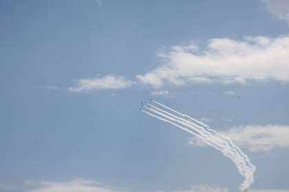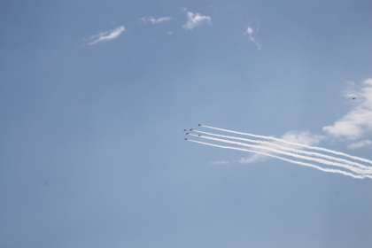 教職員一同、感謝の気持ちで飛行を眺めておりました。