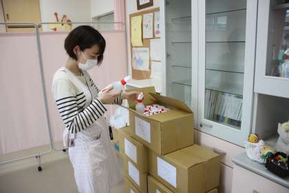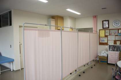 保健室はパーテーションで区切り、体調の悪い子スペースと、けがの手当てスペースに分かれました。