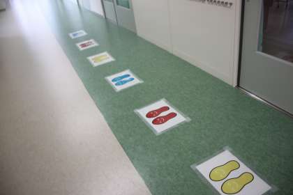 水道の前の、待機場所コーナーの表示も、保健室の先生が貼ってくれました。