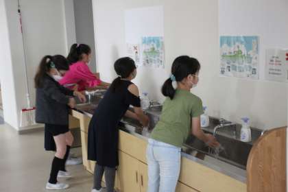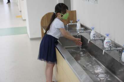 水道のところにある表示をよ〜く見て、じっくりていねいに洗います。