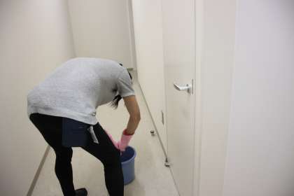 次亜塩素酸の溶液に浸した雑巾で、あちらこちらを消毒。
