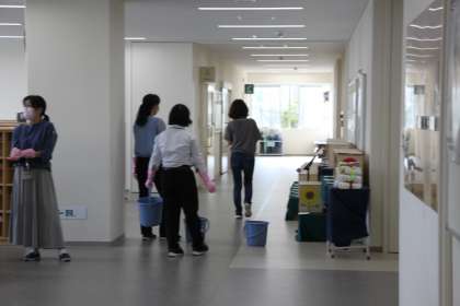 子どもたちが下校した後は、毎日、職員総出で消毒作業を行います。