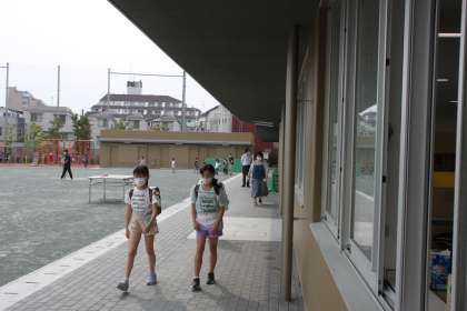 学習を終えた5年生たちが下校していきます。