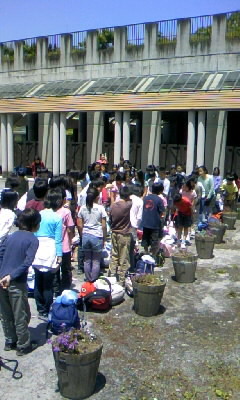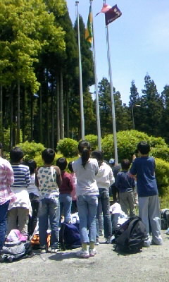 中野ビレッジに到着しました。開室式で奥沢小学校と顔合わせしました。