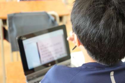 先生から出された課題に、ロイロノートで答える仕組みをつくっている6年生。