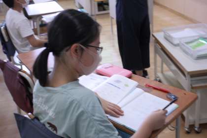 ノートにしっかりと図を描きながら、分数の割り算の仕組みを考える6年生たちでした。