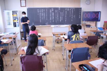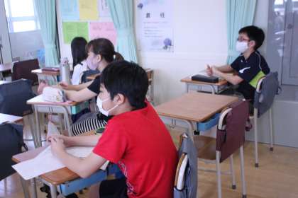 先生からの問いかけに、6年生たちが真剣に考えます。