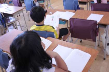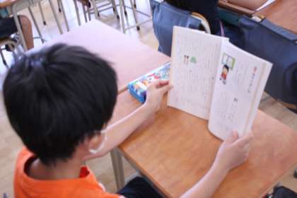 3年生の教室では、漢字の音読みと訓読みについての学習をしています。