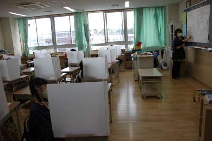 来週から始まる給食に向けて、パーテーションを仮に設置したのです。