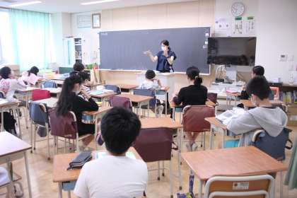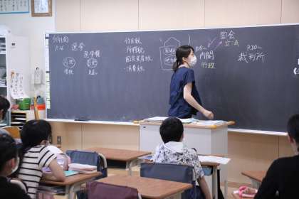 選挙権を得るのは18歳になってからですが、みんな興味津々の様子で先生の話に聞き入っていました。