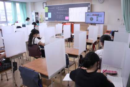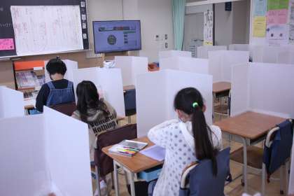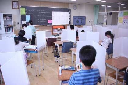 5年生の教室で試験運用しているパーテーション。