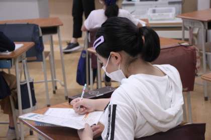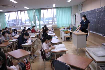 得意の計算技術を生かして問題演習に取り組む6年生。