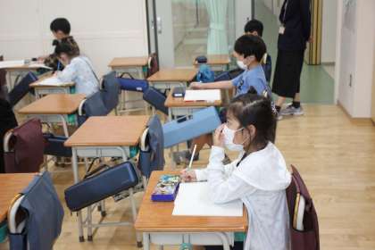 鉛筆をしっかりと持って、一生懸命にノートに向き合う2年生。