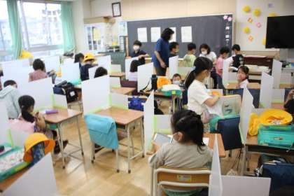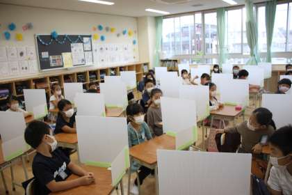 パーテーションが設置されて、ますますいつもと違う教室内。