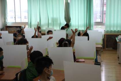 どんな係が必要が、先生が子どもたちに訊いています。