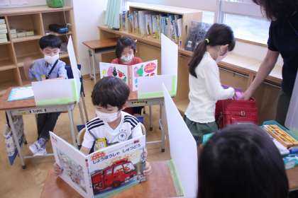 支度の終わった子たちは、静かに読書をしたり、絵を描いたり、折り紙をしたり・・・