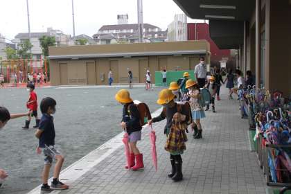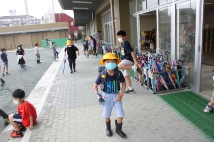 ランドセル、水筒に加え、傘もちゃんとわずれずに持ち帰ります。