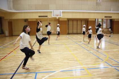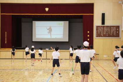 6年生が体育の時間に、動画を観ながらダンスをしています。