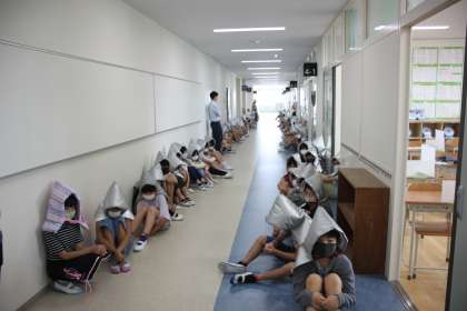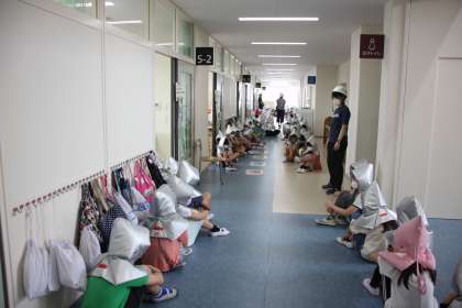 全学年、廊下までの避難でしたが、短時間で静かに、避難を終えることができました。