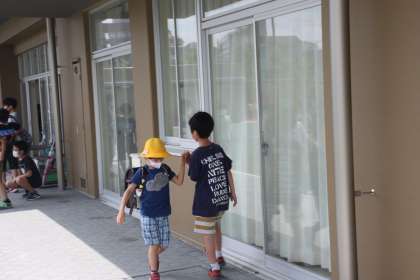 黄色い帽子の1年生たちが下校していきます。