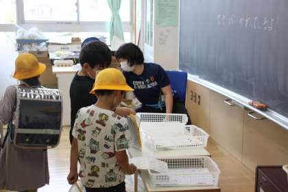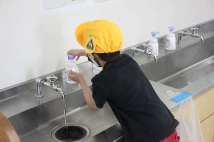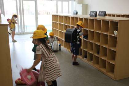 登校したらまずは手を洗い、学習の支度を済ませます。