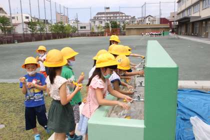 いとおしそうに水やりをする1年生たちでした。