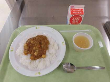 ひよこ豆のカレーライス りんごゼリー 牛乳