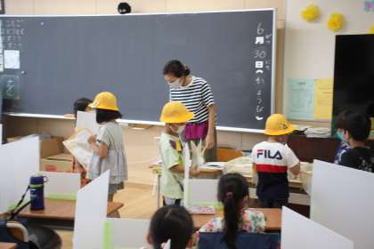 例年だと6年生がお手伝いをしてくれるのですが、新型コロナウイルス対策のために今年度は1年生だけで行わなくてはなりません。