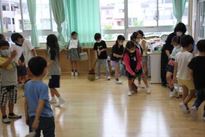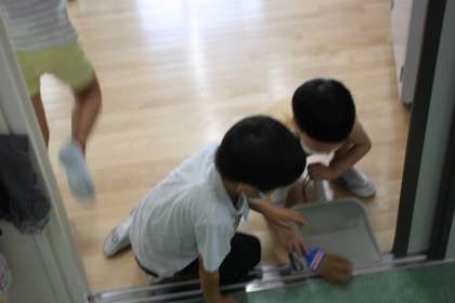 机を下げて、広くなった教室を、掃き清め、吹きあげていきます。