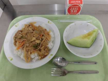 スタミナ丼 メロン 牛乳